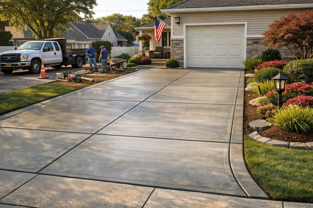 Concrete is a durable, low-maintenance option that stands up well to the seasonal weather patterns on Long Island. Properly poured and reinforced concrete resists rutting from vehicle traffic and can be finished to provide traction in wet conditions. For homeowners focused on curb appeal, concrete offers a clean look and a range of finish options, from broomed textures to exposed aggregate.