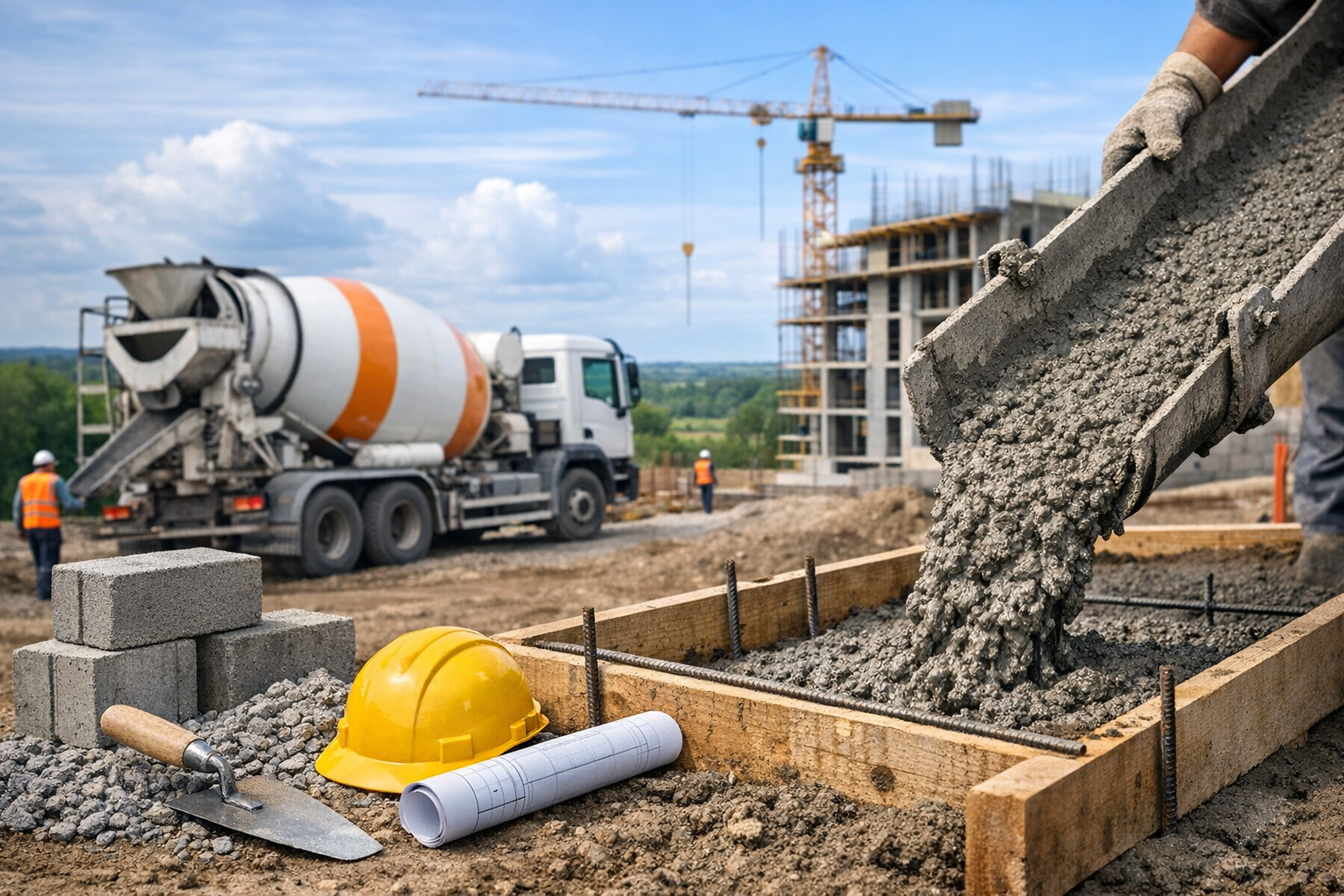 Concrete foundations are essential to the strength and stability of many buildings. County concrete teams may pour slab foundations, footings, and structural pads for homes, additions, sheds, and larger structures. Since foundations must support the entire load of a building, proper site preparation, reinforcement, and curing are critical.