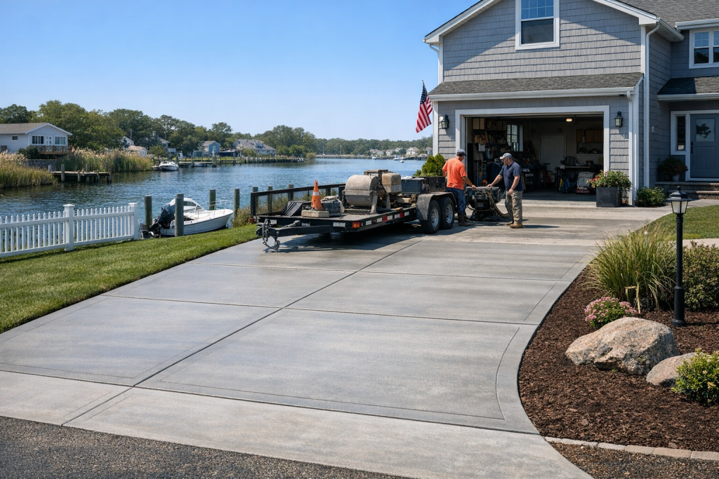 Living in Mastic Beach means dealing with coastal weather, salt air, and seasonal temperature swings that can stress ordinary driveway materials. A properly designed concrete driveway provides long-term durability, resists weathering, and improves curb appeal for waterfront and inland properties alike.