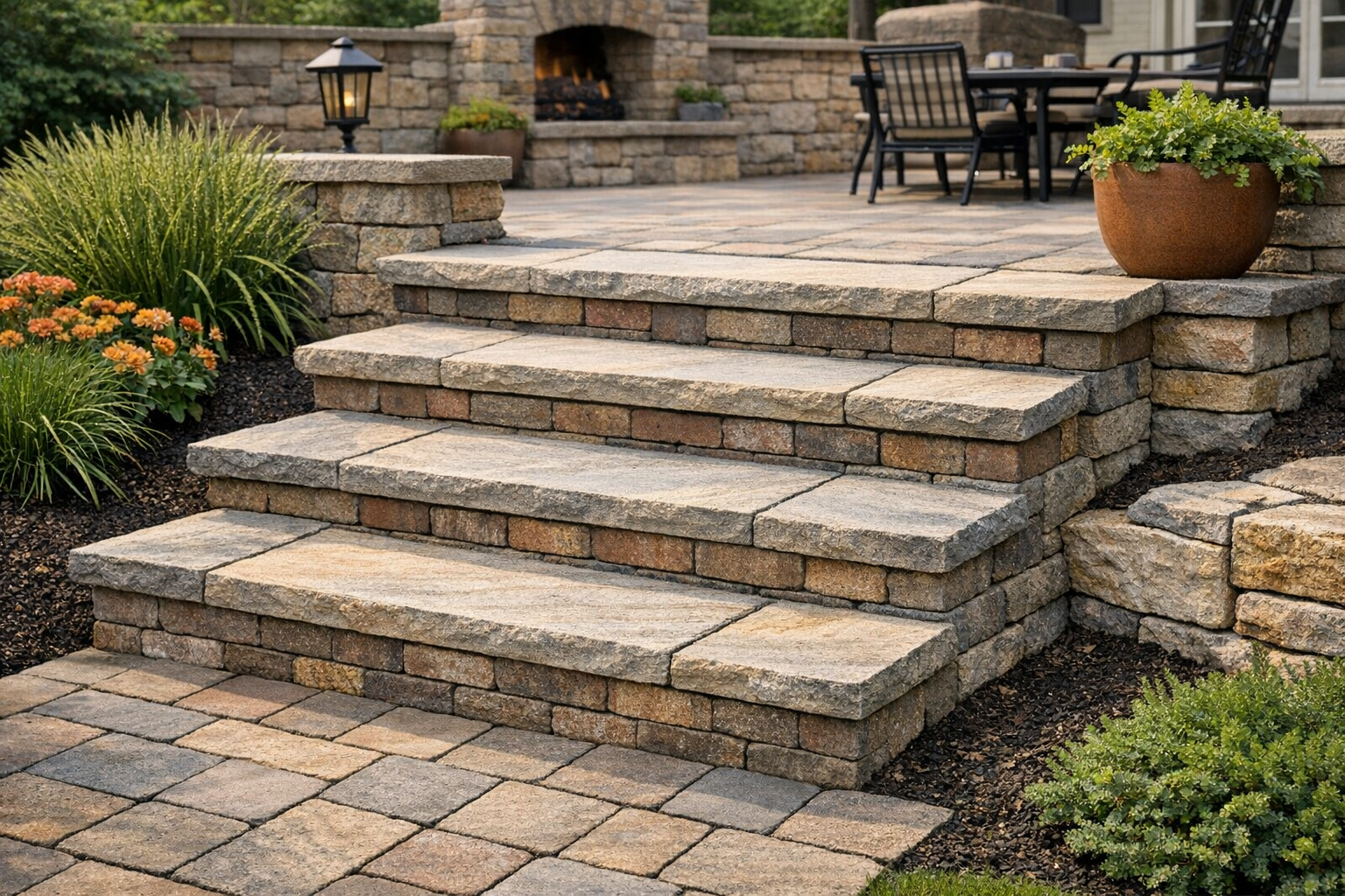 Well-designed masonry steps can improve curb appeal and create a polished first impression. Because they are both attractive and practical, they often add perceived value to a home or landscape.