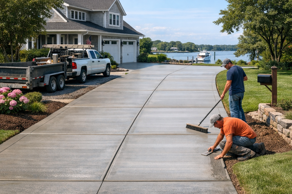 Concrete is a durable surface that stands up to regular vehicle traffic and the seasonal changes typical on Long Island. Properly designed and installed concrete handles freeze-thaw cycles, manages runoff when graded correctly, and can be finished to complement homes across Great River. For homeowners who want a low-maintenance surface with long-term value, concrete remains a top choice.